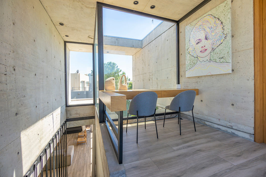 Subiendo por una escalera de escalones flotantes, encontramos un espacio de home office, dos dormitorios en semisuite y la imponente Master Suite, que incluye vestidor, baño en suite con tina Jacuzzi y una terraza privada con vistas al pulmón verde.