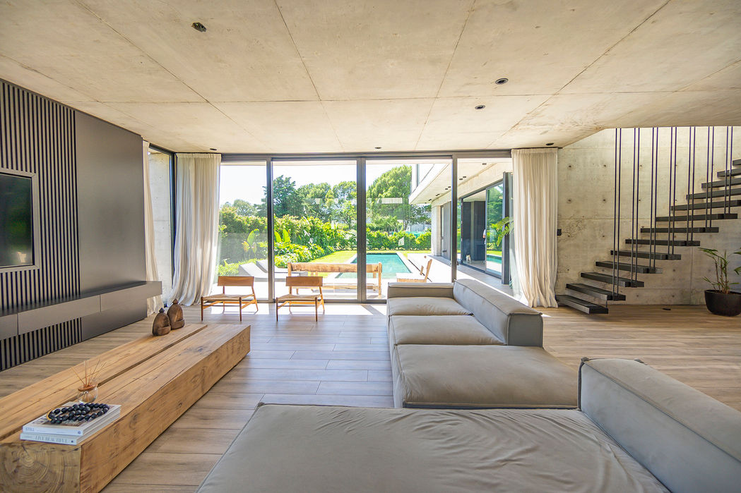Un refugio de líneas puras donde el concreto se funde con la luz, creando un diálogo silencioso entre lo construido y lo natural. Las amplias ventanas invitan al paisaje a ser parte de la vida cotidiana, mientras los interiores resuenan con una elegancia sobria y minimalista. Cada rincón, bañado por la serenidad, ofrece una conexión íntima con el entorno. Esta casa es más que una estructura; es un poema de espacios abiertos que respiran calma y sofisticación.